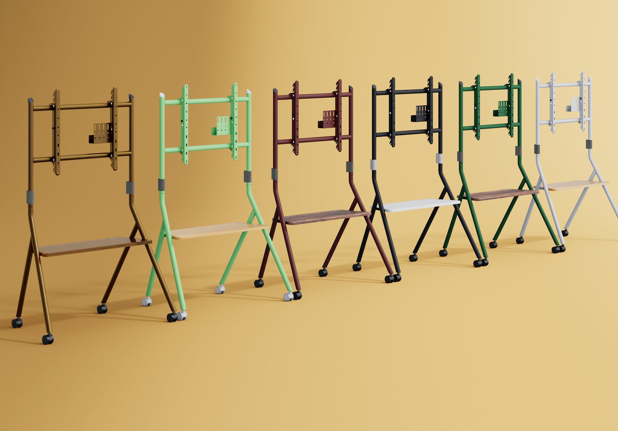 What's COLLECTOR series art TV stand? Design of minimalist structure,anywhere mobile TV stand. The combination of metal tubes and wooden/glass shelves shows a lively and warm atmosphere, let you to feel the beauty and joy of daily life.